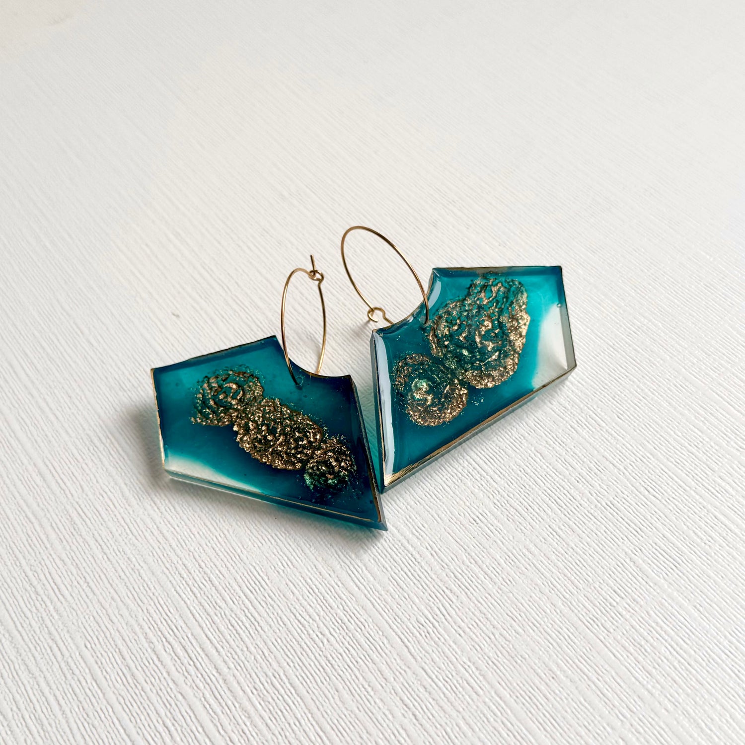 Fait avec de la résine peinte a la main et des feuille d'or.