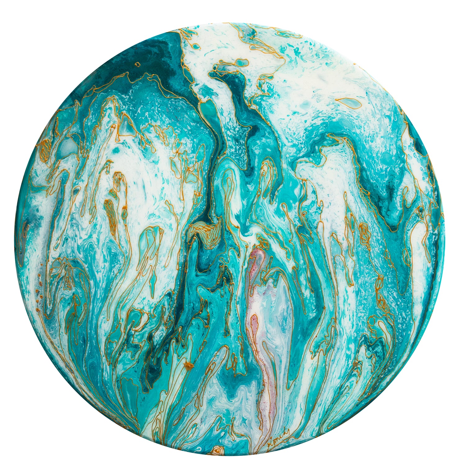 Painted on round wood panel and covered with resin